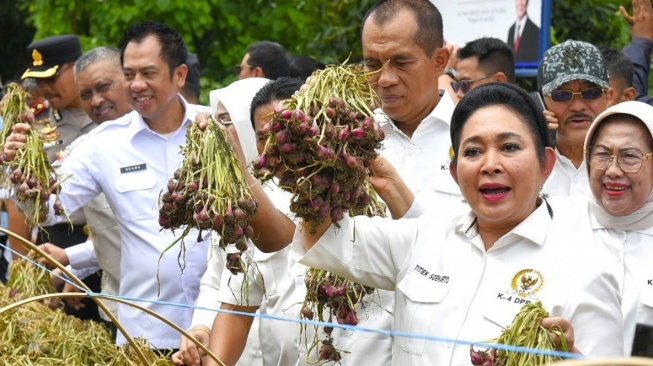 Suara.com - Ketua Komisi IV DPR RI Siti Hediati Soeharto mengatakan bahwa produksi Pabrik Pengolahan Bawang Merah Kelompok Tani Sidomakmur (PT Sinergi Brebes Inovatif) di Desa Sidamulya Kecamatan Wonosari hasilnya sudah melimpah dan telah menembus pasar ekspor internasional. Baik itu produk bawang mentah maupun produk olahannya.